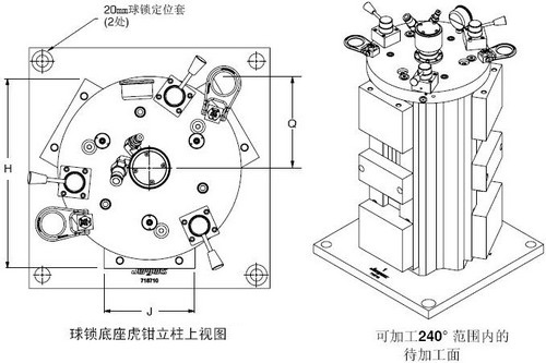 如果将杰根斯的球锁系统应用在卧式加工中心(HMC)工作台上,将进一步提高加工生产效率。更换虎钳立柱或其他夹具只需不到一分钟的时间,夹具的重复定位精度将在±0.013mm以内。 |